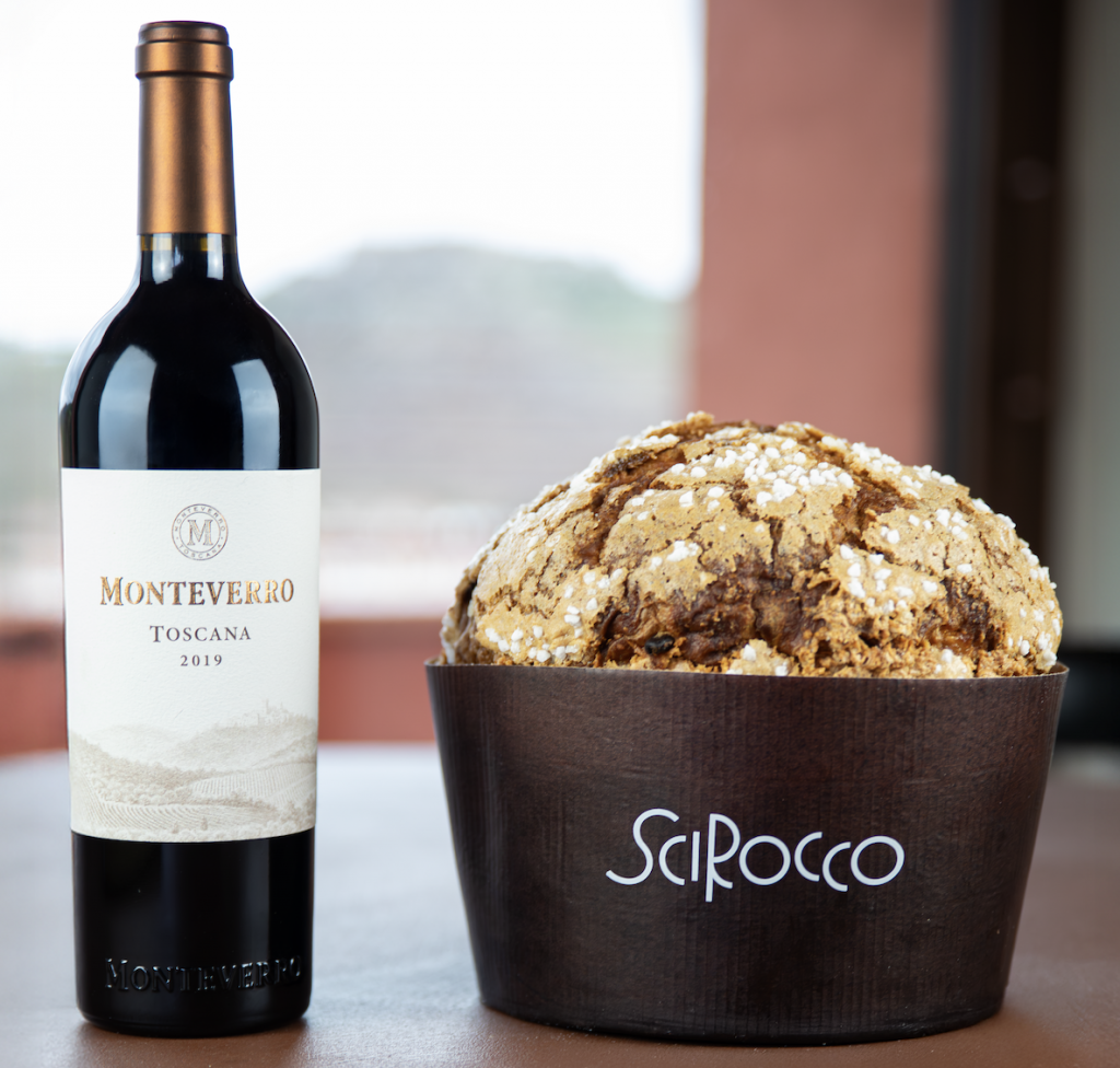 Il Panettone La Roqqa al vino rosso Monteverro è firmato dallo Chef Francesco Ferretti e prodotto in edizione limitata.