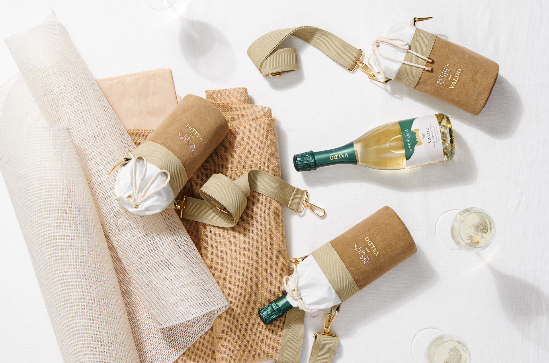 Per Valdo, Resilia ha creato un delizioso accessorio sostenibile: la Bucket Bag. Disegnata appositamente per l’etichetta Amor Soli, il primo Prosecco Superiore Biologico della storica cantina di Valdobbiadene, prodotto in edizione limitata, la bucket bag è una pratica borsa a tracolla per mantenere refrigerato il Prosecco.