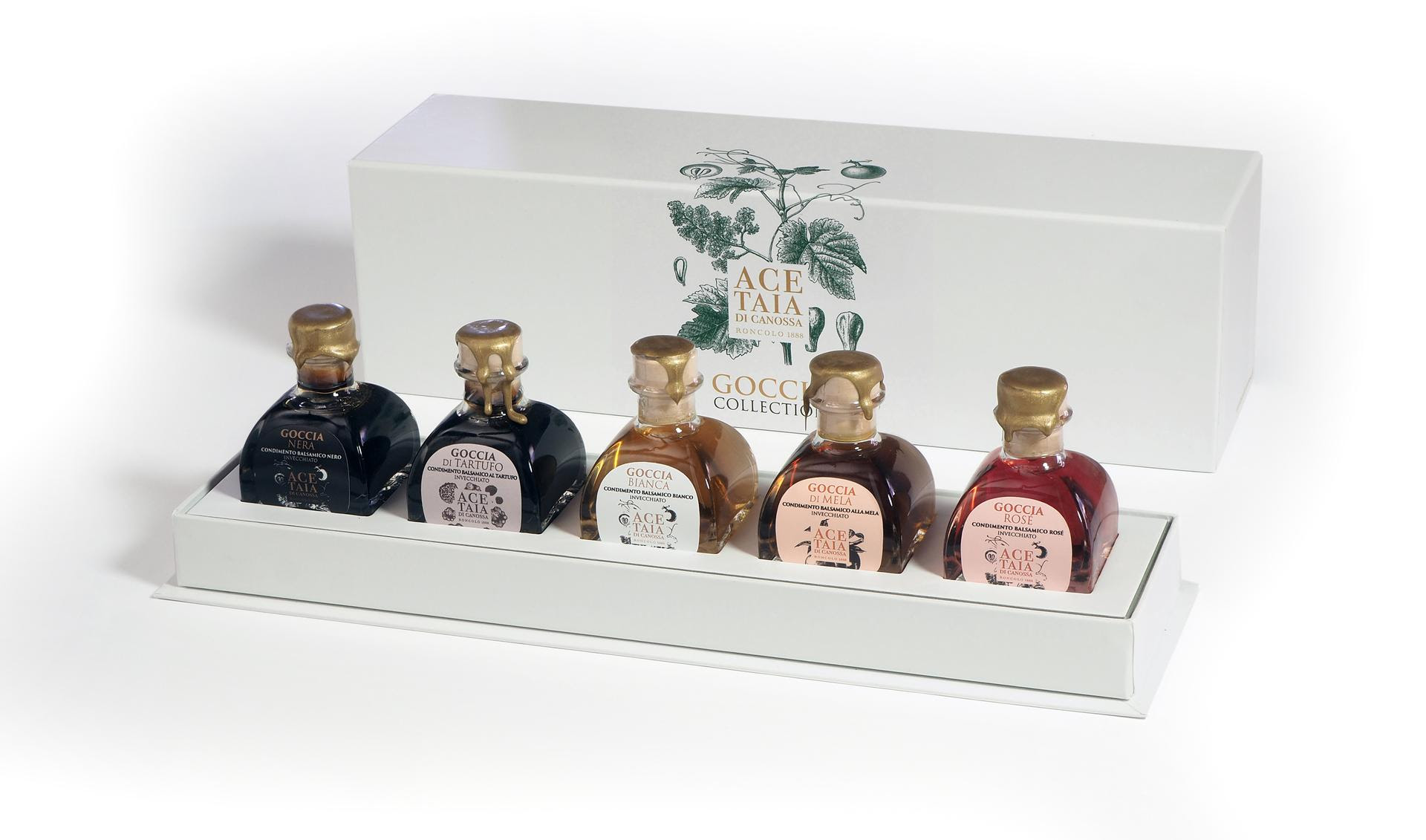 Il countdown si fa sempre più serrato! Mancano 25 giorni a Natale. No panic! Ecco qualche idea “golosa”.  L’Acetaia di Canossa di Venturini Baldini gioca d’anticipo e presenta la sua Gift Box Goccia Collection, con una selezione di condimenti balsamici con un invecchiamento tra 5 e 8 anni, e si declina in Bianca – di sole uve bianche Malvasia -; Nera – da lenta maturazione per otto anni in legni di varie essenze -; Rosé – da uve Ancellotta – e Mela e Tartufo. Non condimenti qualsiasi, dunque, ma vere e chicche gourmet. Una preziosità unica, capace di esprimere, oltre che un gusto ricercato, un valore che è espressione di un territorio e di una passione per le cose genuine.