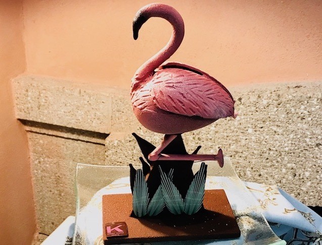 Infine è stato presentato il cioccolatino di San Valentino, un cuore arancione che richiama il colore della bottiglia e le fragranze del profumo Bond No 9; le note di testa Clementine, Mandarino e Pompelmo, e proprio il mandarino costituisce il ripieno dello scrigno di cioccolato. Knam ha anche anticipato il tema per la Pasqua 2018 scelto dalla moglie Alessandra preziosa collaboratrice e sostenitrice: il Fenicottero. Ecco che per metà marzo le vetrine del negozio di Via Anfossi si tingeranno di rosa, mille fenicotteri vivacemente colorati piccoli e grandi faranno capolini tra le varie uova di cioccolato che non possono certamente mancare.