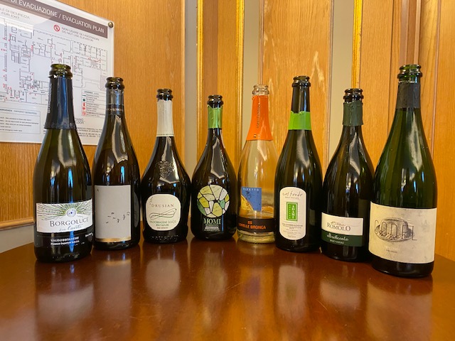 Otto vini in degustazione, otto espressioni differenti, ma tutti accumunati dai lieviti presenti sul fondo della bottiglia che caratterizzano e marcano in modo inconfondibile questo Prosecco.