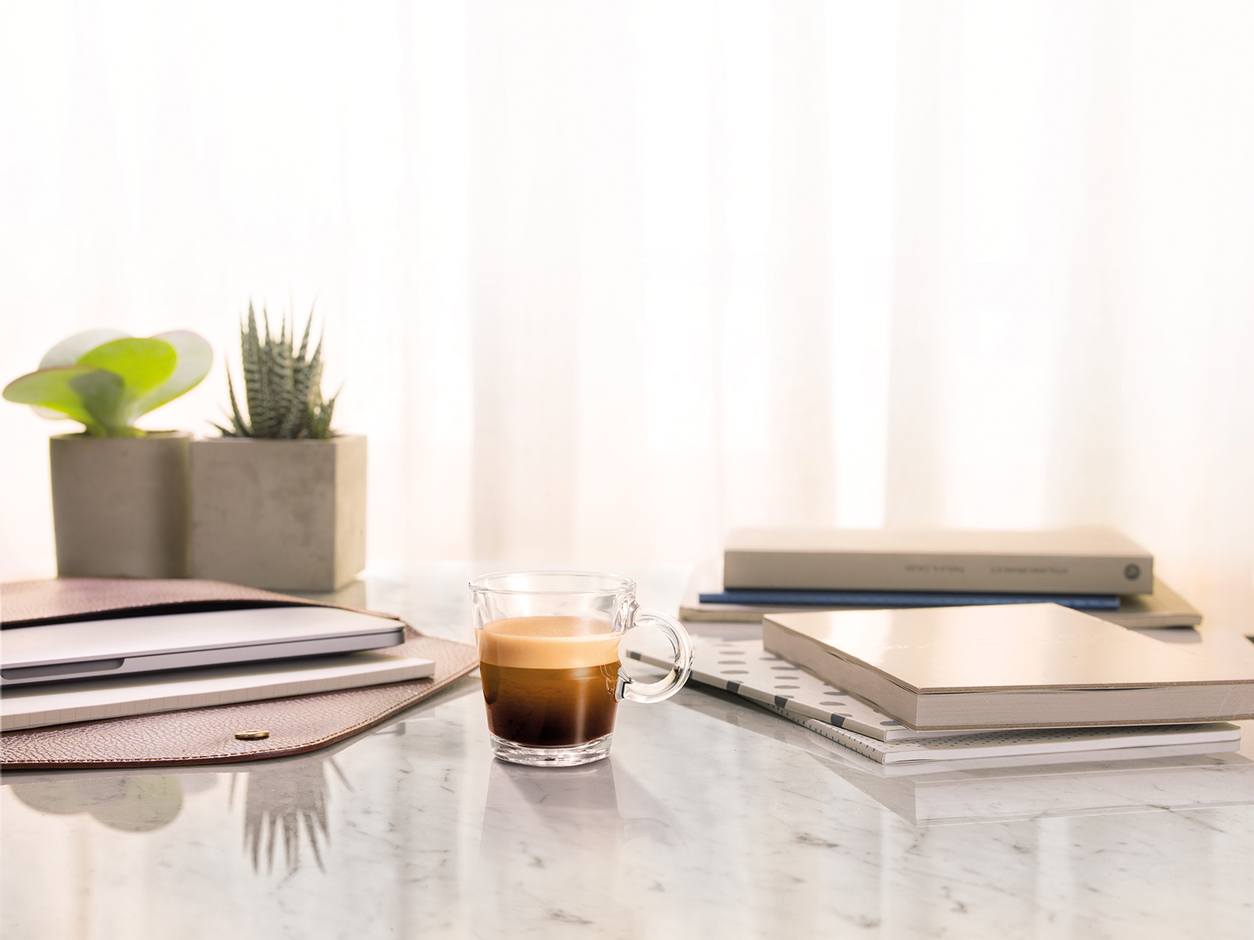 La colazione del “salutista”: ESPRESSO XL CON ENVIVIO. Da perfetto salutista, non puoi non sapere che la colazione, esattamente come ogni pasto della giornata, deve essere sana ed equilibrata. Mai dimenticarsi le bevande che a colazione hanno un ruolo fondamentale perché contribuiscono a ripristinare l’acqua eliminata dall’organismo durante le ore notturne. Via libera quindi a spremute, tè e all’immancabile black coffee per eccellenza, il caffè espresso ed intenso. In particolare, l’Espresso XL con Envivio è il caffè più adatto per completare questa colazione: sostituisce il doppio, avendo un contenuto di caffeina più elevato dovuto al contenuto di Robusta e all’erogazione più lunga; è un caffè dalle note tostate ed amare che ricordano quelle della moka e del tradizionale caffè da colazione: ha un retrogusto persistente e pieno, che insiste su note di tabacco e di liquirizia.Nespresso tazza di espresso
