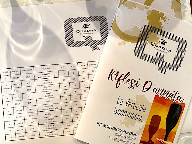 Questa la degustazione proposta dall’Azienda Quadra per il Festival Franciacorta 2020. Quadra è la materializzazione di un sogno, nel 2003, infatti, l’imprenditore Ugo Ghezzi e la sua famiglia decidono di produrre un loro vino con le uve provenienti dai vigneti di proprietà. Le vigne di Quadra si estendono su 20 ettari: lo Chardonnay occupa il 60% della superficie vitata, al Pinot Nero, 20%, sono state destinate alcune parcelle collinari insediate sui depositi morenici e Pinot Bianco, 20% per il quale si sta portando avanti un lavoro di valorizzazione, utilizzato nelle diverse Quvée contribuisce ad esaltarne carattere ed originalità.