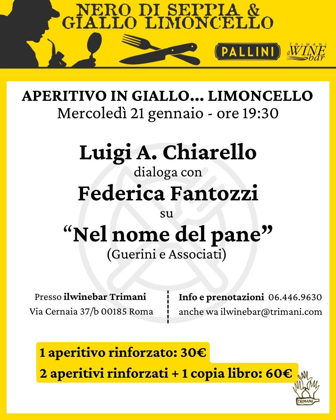 Ad aprire la stagione sarà Luigi Chiarello, che mercoledì 21 gennaio, presso ilwinebar Trimani, racconterà il suo noir “Nel nome del pane”, presentato dalla giornalista e scrittrice Federica Fantozzi, in una serata che intreccia racconto, convivialità e degustazione, con la proposta gastronomica della chef Carla Trimani e i cocktail firmati Pallini.