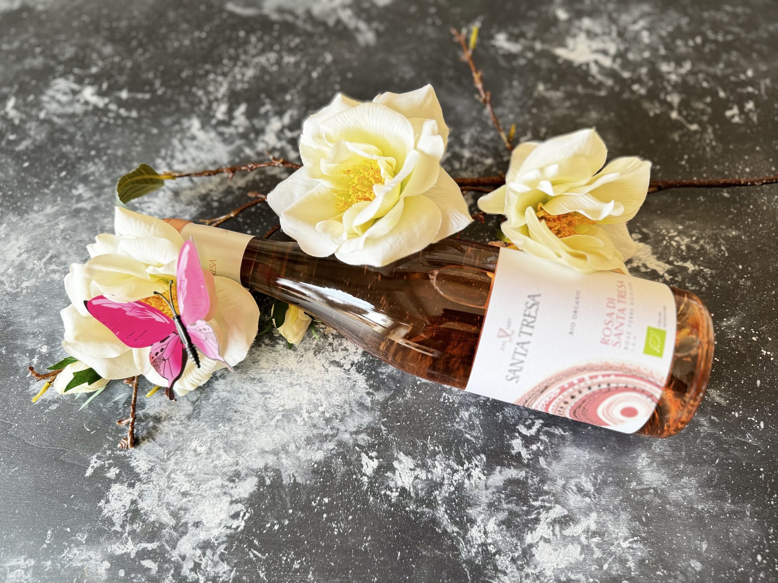 Dall’unione di questi due vitigni autoctoni nasce Rosa, un rosato fermo biologico ottenuto da Nero d’Avola 50% e Frappato 50%. Queste due varietà regalano un rosato autoctono dai profumi e dal sapore della Sicilia il cui nome è dedicato alla rosa, che per gli antichi era il fiore del silenzio. Le uve vengono raccolte a mano in cassette da 15 kg, il Nero d’Avola nella prima metà di settembre, il Frappato verso fine settembre. Le uve sostano in cella frigorifera per una notte così da abbassarne la temperatura fino a 6-8 °C e successivamente diraspate e pigiate delicatamente. Il colore di “Rosa di Santa Tresa” nasce grazie ad una macerazione naturale sulle bucce in pressa pneumatica a freddo per circa due ore per il Nero d’Avola e quattro ore per il Frappato. Le uve sono delicatamente pressate fino a un massimo di 0,6 bar. Il mosto, così ottenuto, sosta una notte a circa 10 °C al fine di consentire la sedimentazione ed in seguito travasato per iniziare la fermentazione che dura circa 12 giorni a una temperatura controllata di 17 °C. Terminata la fermentazione alcolica, i due vini vengono riuniti e iniziano un affinamento sur lie per un periodo tra i 3 e i 4 mesi prima di essere imbottigliato. Dal delicato colore rosa pallido con riflessi ramati, al naso il bouquet è di piccoli frutti rossi, tra mirtillo, ribes, lampone, ciliegia bianca, fragolina, accompagnato da note floreali violetta e rose, con un tocco minerale e fresco. In bocca è delicato, elegante e suadente, con ritorni di lampone e fragolina di bosco. Rosa di Santa Tresa è estremamente versatile negli abbinamenti: perfetto come aperitivo, con salumi e con tutti i piatti leggeri sia a base di verdure sia a base di pesce, si sposa bene anche con le carni bianche, ma l’abbinamento ideale è con il pesce crudo.