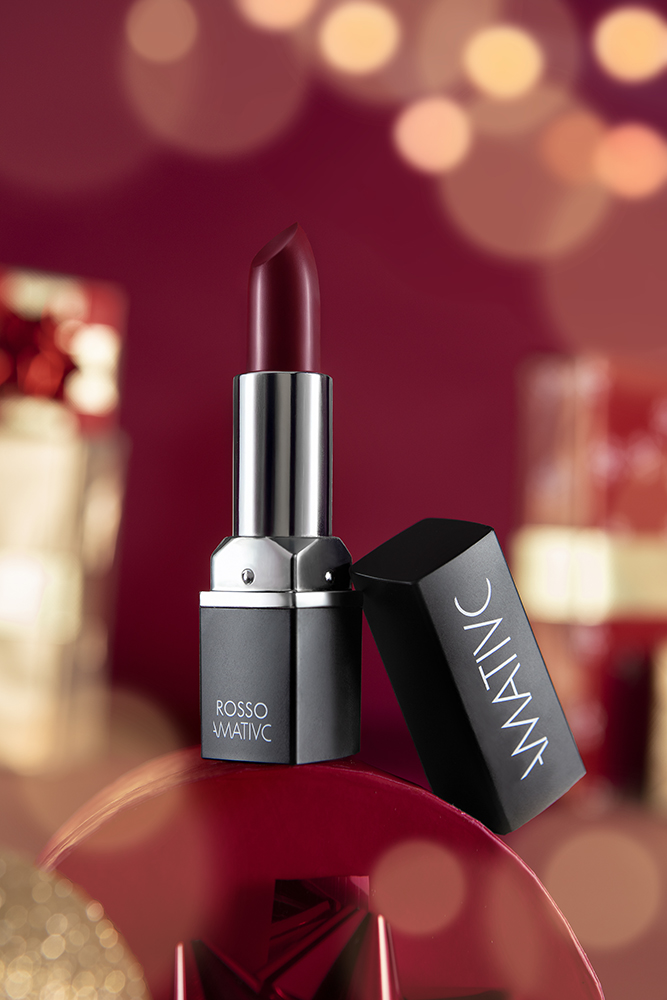 Ma non è solo una questione di benessere per la pelle: il Rossetto AMATIVO regala anche un colore esclusivo. La sua impronta vermiglia non è semplicemente rossa: è ROSSO AMATIVO, una tonalità che richiama la passione e l’intensità del vino, simbolo di una bellezza autentica e senza compromessi.
