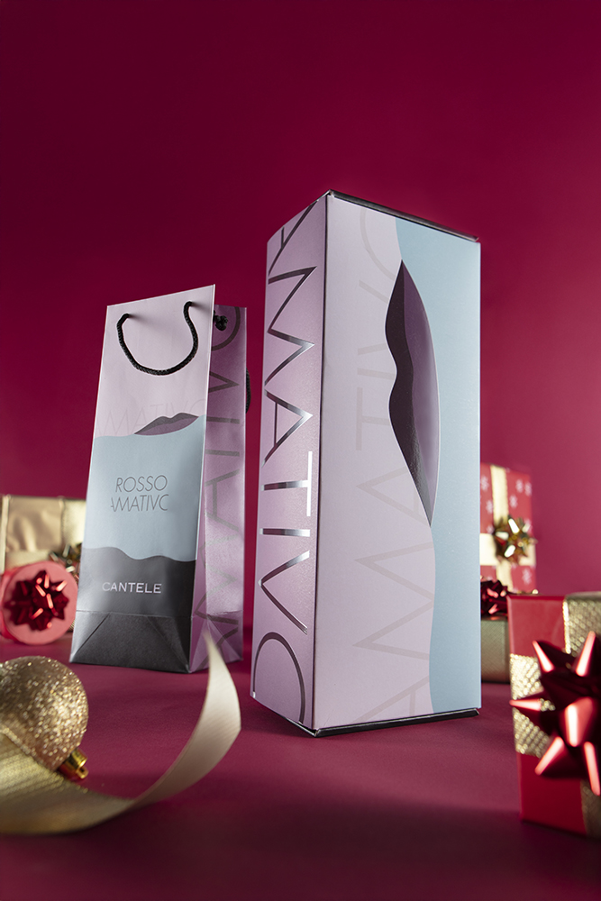 ROSSO AMATIVO in confezione con una bottiglia di Amativo è in vendita nelle migliori enoteche e sul sito cantele.it al prezzo lancio di 25 euro.