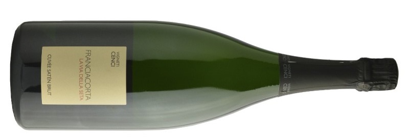 Vigneti Cenci La Via della Seta Satèn Brut Franciacorta DOCG Il più delicato e setoso dei Franciacorta, 90% Chardonnay 10% Pinot Bianco, prodotto da un’azienda nata dall’amore per il territorio del Monte Orfano di un medico amico di Fellini. Il bouquet fresco si apre con fiori bianchi arricchendosi con albicocca, pesca e un tocco di ortica. Sorso fruttato e ricco insaporito dalla mineralità conferitagli dal terreno. Essenziale, vellutato, con la sua personalità spiccata ma non invadente, è perfetto sia per l’aperitivo sia per un tutto pasto.