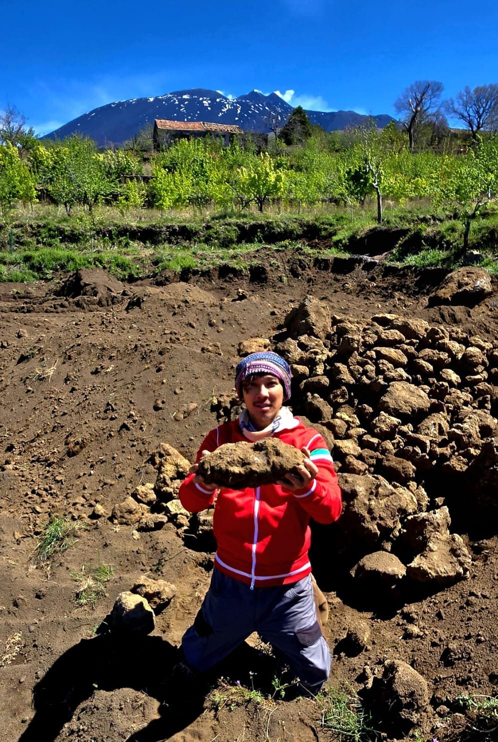 L’Etna, o “La Muntagna”, come la chiamano i siciliani, è il vulcano attivo più alto d’Europa e si trova sulla costa orientale della Sicilia, vicino a Catania. È un’entità viva e mutevole, il cui profilo cambia frequentemente a causa delle eruzioni; il suolo fertile è composto da roccia lavica, cenere e lapilli. Qui la vite non cresce, ma resiste, si adatta e sorprende. Alle sue pendici, tra nere colate laviche e muretti a secco, prende forma una viticoltura tra le più affascinanti d’Europa, e il vino è il risultato di un equilibrio delicato tra fuoco, tempo e passione di audaci viticoltori.