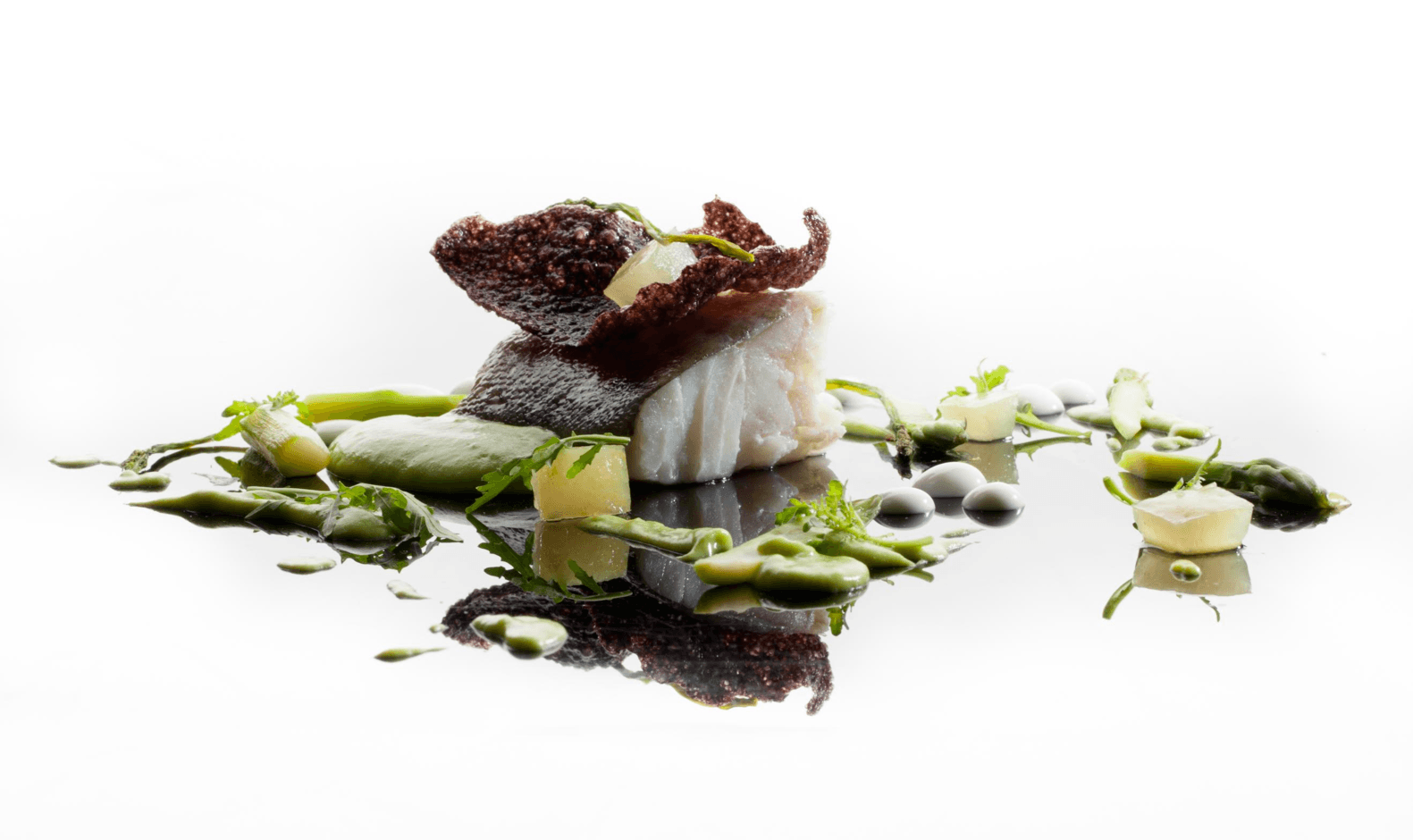 Emozioni e suggestioni di uno chef creativo…….Andrea Becattini ritrova Piazza di Spagna e le sue “notti romane” nella zuppa di cavolo viola, spuma di mandorle, quinoa soffiata e melograno, si sofferma nei vicoli chiassosi di Trastevere e nel glamour di Via Veneto nella guancia brasata con topinanbur e birra, si tuffa virtualmente nella fontana di Piazza Navona con un assoluto di anatra, castagne e ribes, ritrova nel suo mare di Ostia una ninna nanna cadenzata dal movimento delle onde creando un capolavoro nel tonno scottato con salsa di piselli, purea di carote e pompelmo, rivede le dolci spiagge con i suoi occhi di ragazzo nel dentice con melanzana, arancia e pinoli, ritrova il rapporto intenso dell’uomo con il mare, sempre in bilico tra attese e incontri, nel suo baccalà con salsa di asparagi e cedro della Sicilia candito.