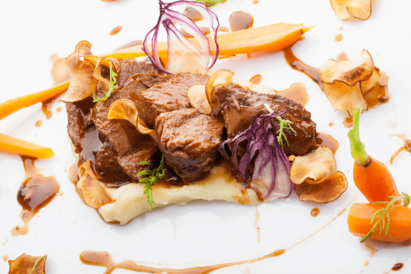 Ricetta Guancia brasata con purea di patate e carote baby