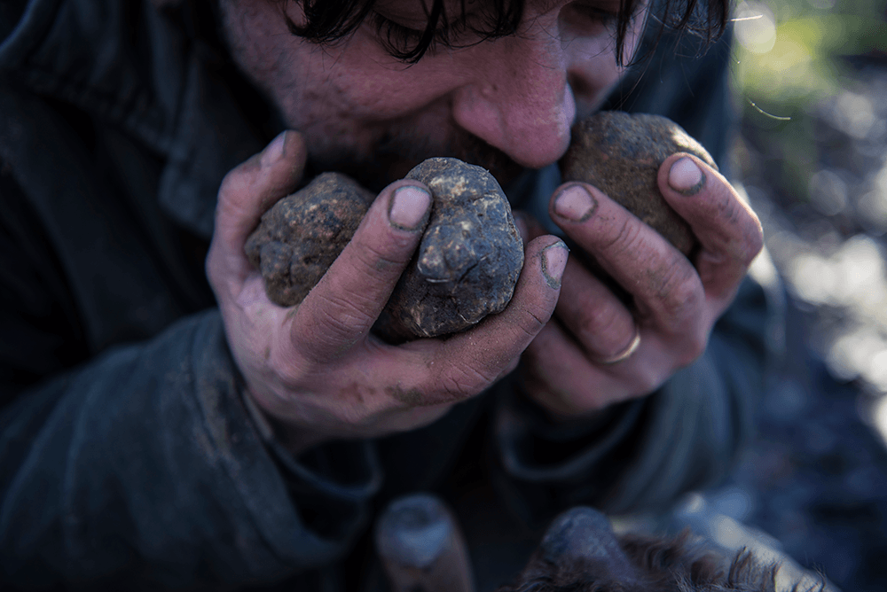La fama del tartufo rimane inalterata sfidando il trascorrere del tempo, ma è il tartufo bianco, Tuber magnatum, ad essere il più pregiato e il più costoso tra tutte le varietà; per l’area delle colline Sanminiatenesi e elle Crete Senesi la raccolta va dal 10 settembre al 31 dicembre. Può assumere diverse forme: rotondeggiante, allungata o appiattita a seconda del tipo di terreno in cui il tartufo è cresciuto. Esternamente è liscio e vellutato, con sfumature che vanno dal crema al giallo ocra, mentre internamente è chiaro con venature marroni. Inconfondibile ed indescrivibile il suo bouquet che regala note che si fondono in un sorprendente equilibrio tra il miele di castagno e quello intenso, selvatico profumo di sottobosco e fungino.