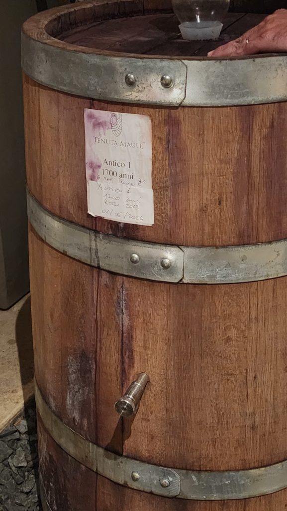 Ma la sperimentazione non conosce confini e così la Tenuta Maule sta sperimentando la vinificazione con un sistema unico brevettato: affinamento in botti di legno fossile di 1700 e 3600 anni fa. I primi vini prodotti con questa tecnica sono ancora in fase di affinamento, ma già si presentano caratterizzati da accentuata nota fumé. Un progetto sicuramente da seguire e da tenere sott’occhio…pardon sotto calice.
