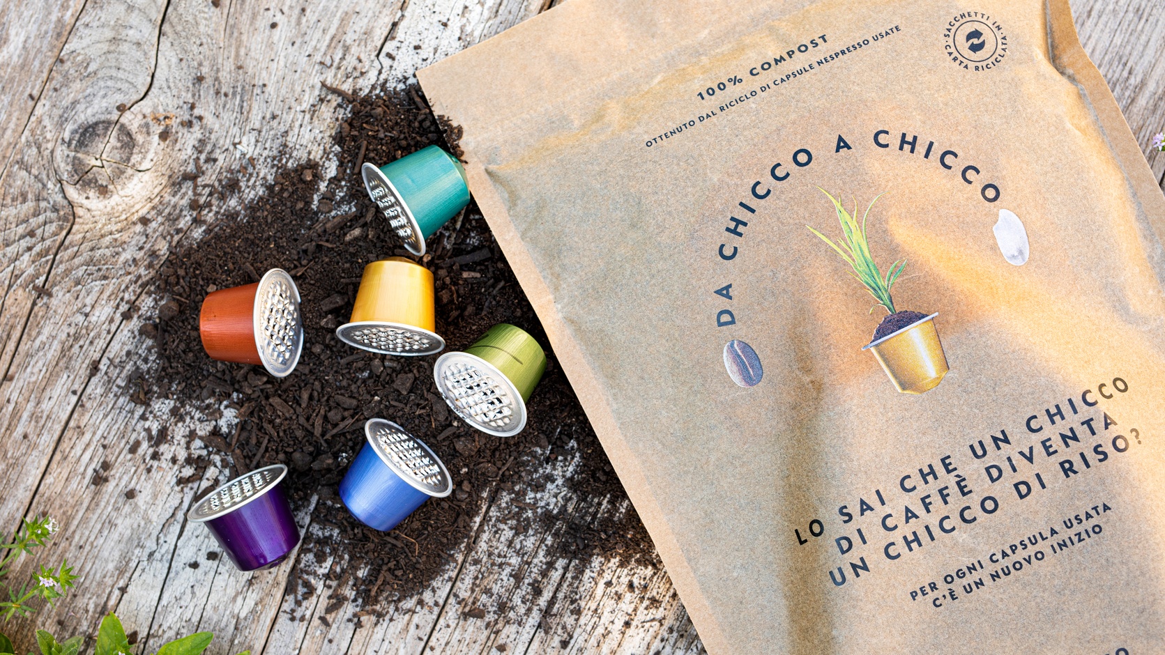Attraverso questa iniziativa, Nespresso sostiene il principio della Circular Economy che da anni ispira il suo operato, rispecchiandosi in ogni fase del business. L’idea della circolarità sta anche alla base dell’iniziativa “Da Chicco a Chicco”, il programma di Nespresso che racconta il viaggio compiuto dal chicco di caffè lungo tutta la filiera di produzione, dalla sua coltivazione nei territori d’origine fino alla sua trasformazione in chicco di riso, proveniente da una risaia dove come fertilizzante viene utilizzato proprio il compost generato dal caffè delle capsule esauste.