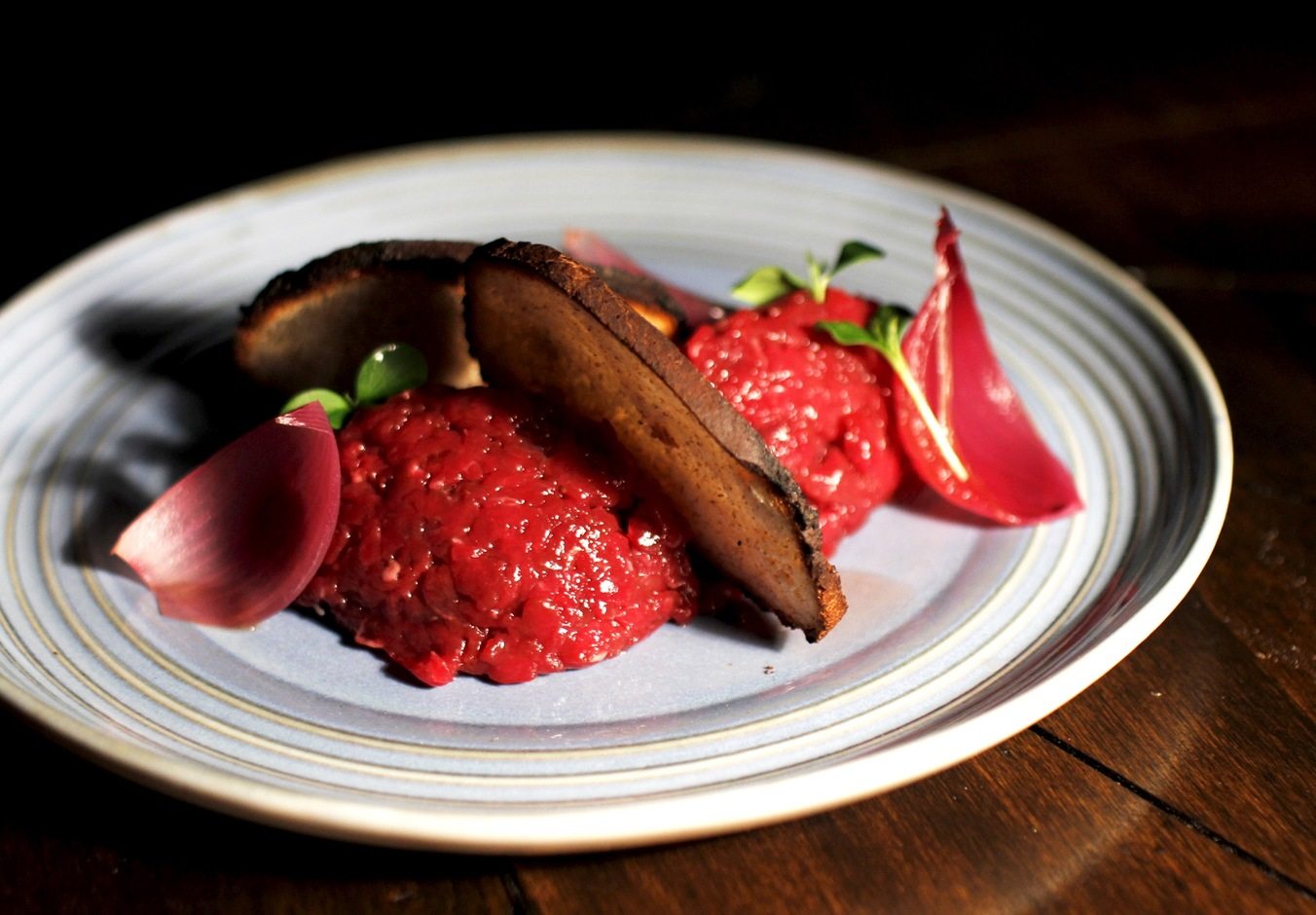 Le proposte: Ullr, la tartare di cervo, Gulltopp gli sfilacci di cavallo marinati, Himinhrjodhr il midollo di manzo gratinato, Tanngnjostr la tagliata di capriolo, Hildsvin il