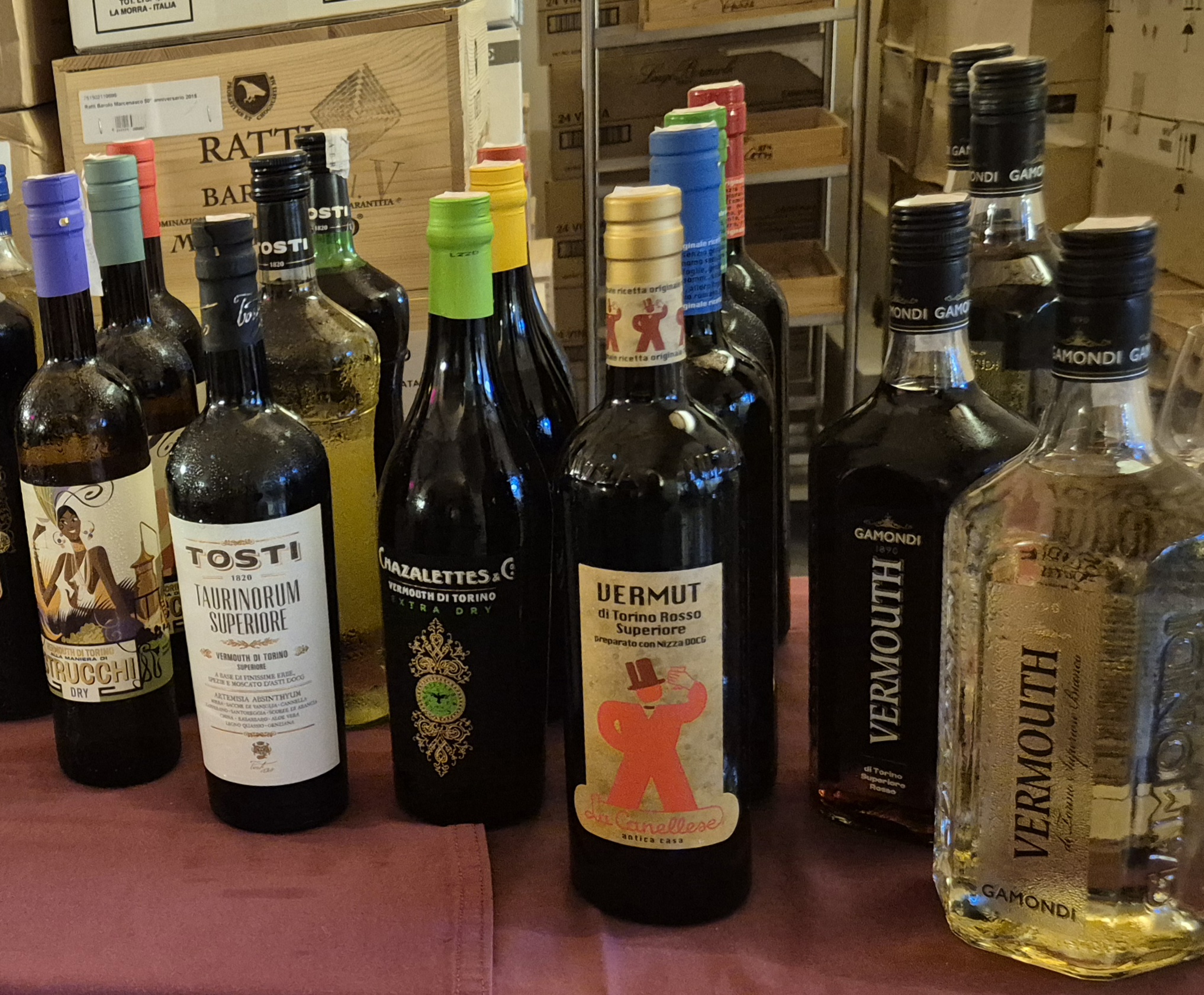 Etichette prodotte dai soci del CONSORZIO del VERMOUTH di TORINO conservate nella Banca del Vino di Pollenzo