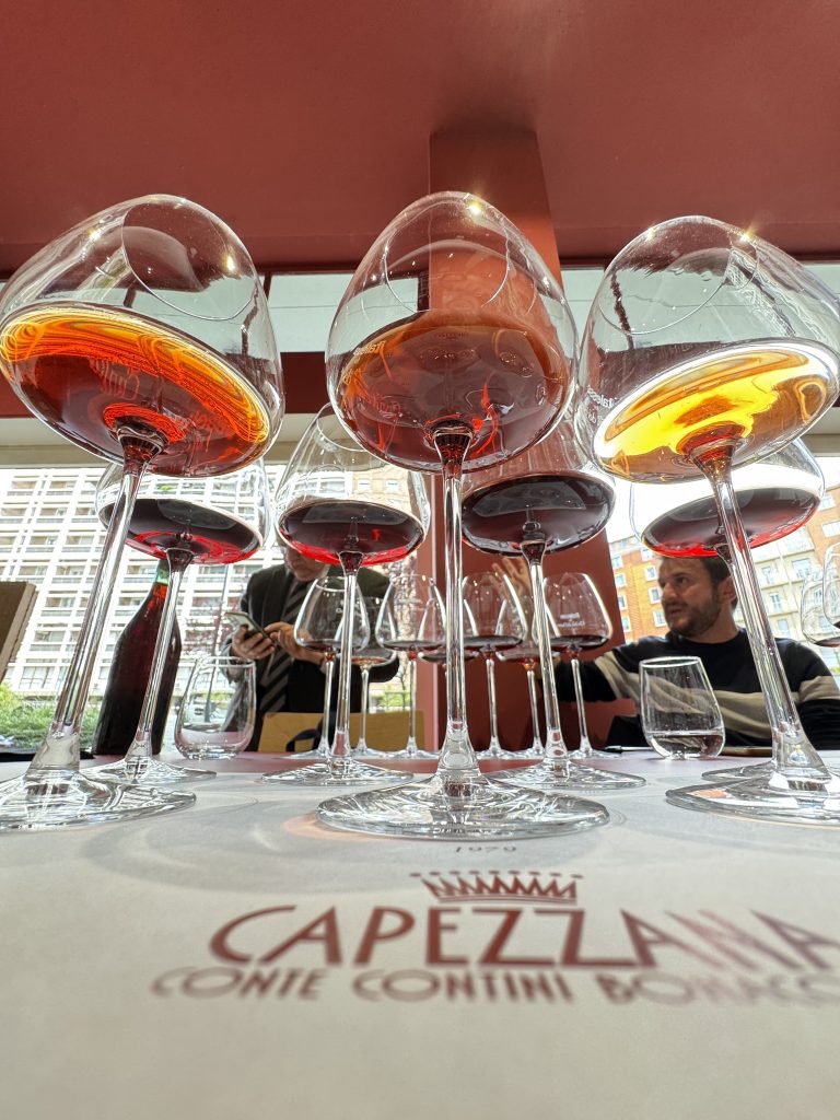 Villa di Capezzana Carmignano DOCG 2021: (anteprima in uscita a settembre) Sangiovese 80% e Cabernet Sauvignon 20%; 14,5 %Alc. Il 70% è affinato per 12 mesi in tonneaux (330 e 500l) e il 30%16 mesi in botte grande 23Hl. Un naso dove la giovinezza del Sangiovese si fonde con i tratti del Cabernet, ematico, ferroso, roccia bagnata, erbe aromatiche del mediterraneo in primis il rosmarino. Un’annata un po’ complicata viste le gelate primaverili. Il sorso è giovane, ancora in evoluzione, potente con tannini giovani e scalpitanti.