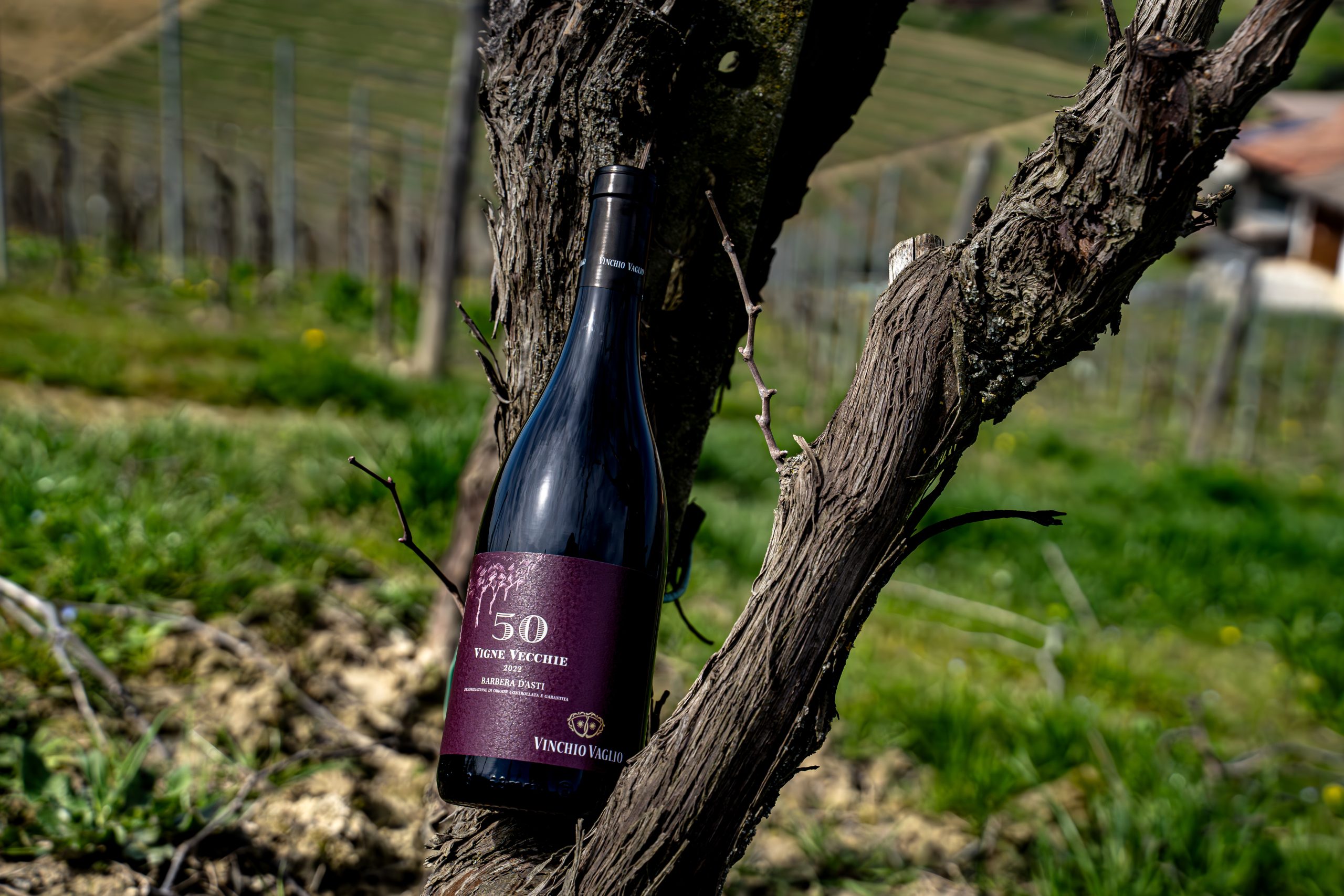 Barbera d’Asti DOCG Vecchie Vigne 50° 2023: questo vino è figlio del progetto più visionario della cooperativa, iniziato nel 1985, e consiste in una selezione e valorizzazione di vigne che avessero almeno 50 anni, andando controcorrente in un periodo in cui in altre parti d’Italia si assisteva al reimpianto. La prima annata prodotta è stata la 1987. Per sostenere questo progetto Vinchio Vaglio è entrata nell’associazione inglese The Old Vine Conference, nata per creare sinergie tra i custodi delle vigne vecchie in tutto il mondo e proporre l’introduzione di una nuova categoria identificativa. In Italia, Francia e altri paesi europei non esiste ancora una regola, una certificazione, pertanto, il termine Vigne Vecchie può essere attribuito arbitrariamente anche a vigne molto più giovani. Questa associazione ha stilato un primo disciplinare mondiale per definire le vigne vecchie stabilendo un’età minima di 35 anni. Questo valore non è casuale, è l’età media di produttività di una vigna, inoltre, per riportare la dicitura in etichetta, il vino deve essere prodotto con almeno l’85% di uve provenienti da vigne identificate come vecchie. La produzione per pianta ridotta a pochissimi grappoli porta a una maggiore concentrazione e la vinificazione in acciaio e cemento offre il massimo che si può ottenere dal vitigno Barbera senza l’uso de legno.
