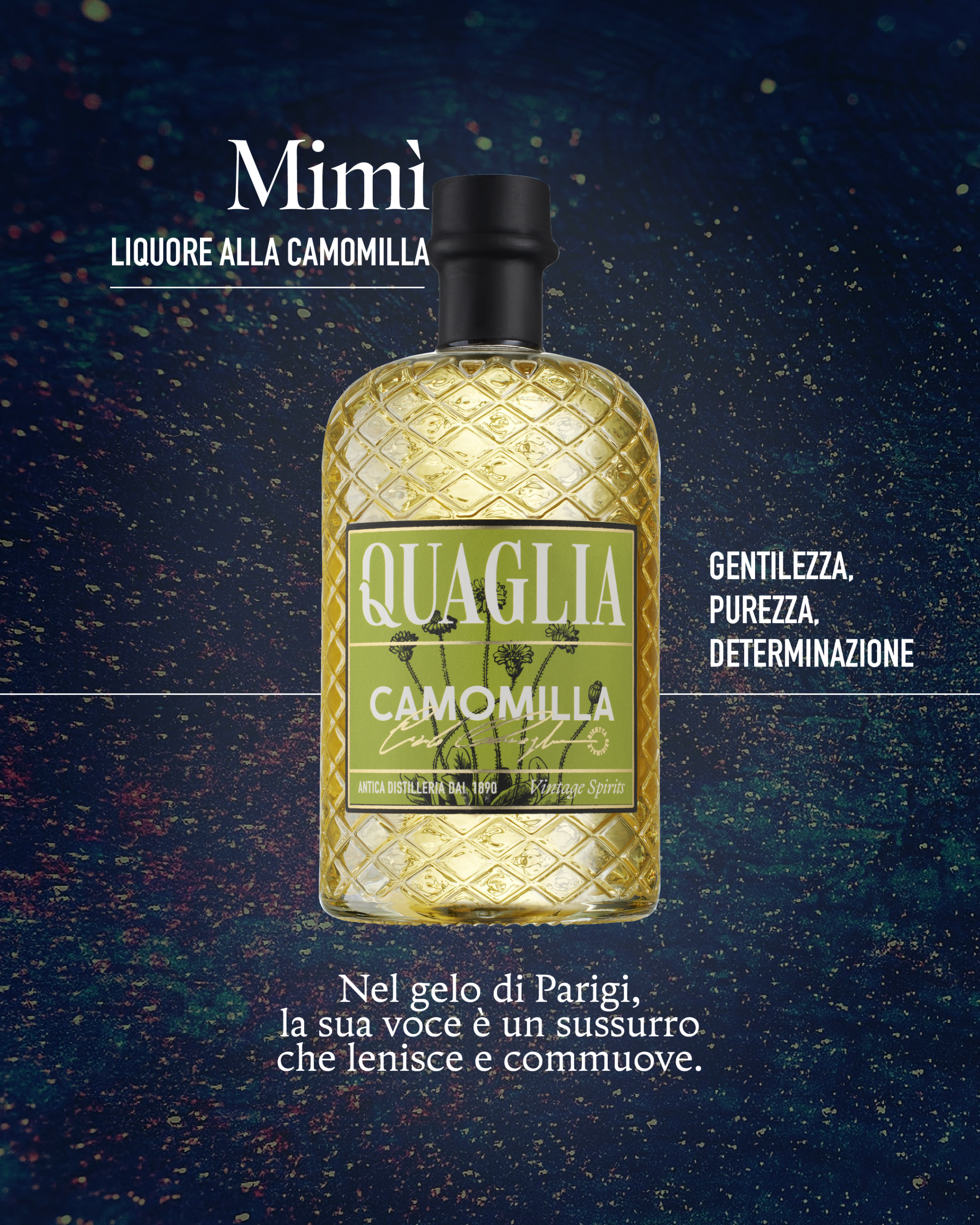 – Mimì realizzato con liquore alla camomilla riporta ad una voce, un sussurro nel gelo di Parigi che lenisce e commuove.